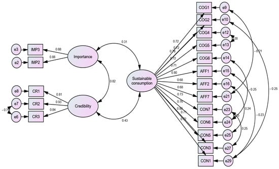 In order to put the concepts into practice, the study utilized measures that had been previously established. The perceived importance of influencers was evaluated according to the Johnstone and Lindh [3] scale, while influencer credibility was determined using the adapted scale developed by Sokolova and Kefi [56]. To measure sustainable consumption, the Quaquab and Mohammad [2] scale was employed, and all items were assessed on a 5-point Likert scale. To ensure the variables had strong internal consistency, a Cronbach’s alpha was calculated, with the results demonstrating high internal consistency.