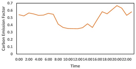 Step 2: Obtain the dynamic carbon emission factors for users. Based on the simulation results provided in Step 1 and in conjunction with Equation (6), the hourly dynamic carbon emission factors for the corresponding time periods of the power system are derived.