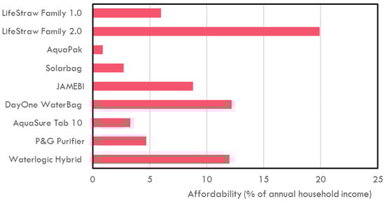 | AquaPak | Contaminated water heats at >65 °C using sunlight to eliminates all types of microorganisms, bacteria, viruses, and protozoa. It has colored wax that melts at 65 °C, indicating that water is safe for consumption. | 23 | 7.3 | YES (can hold 5 L of water). | The AquaPak can be reused daily and has a lifespan of 3 years. | Simple to use and no maintenance required. Minimal likelihood of recontamination when held in disinfecting container. Relatively long time to treat water and variability depending on sun intensity. |