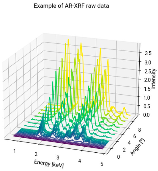 Example of XRF spectra collected in AR-XRF measurements, you can see the change in intensity in the function of the angle of detection.