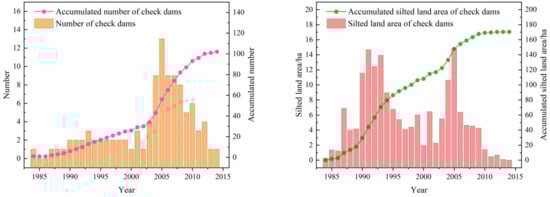 - Li, E.H.; Mu, X.M.; Zhao, G.J.; Gao, P.; Sun, W.Y. Effects of check dams on runoff and sediment load in a semi-arid river basin of the Yellow River. Stoch. Environ. Res. Risk Assess. 2017, 31, 1791–1803. [Google Scholar] [CrossRef]