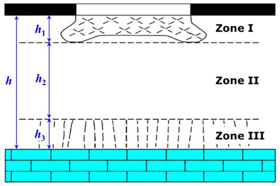 Since the water inrushes we are concerned with in this study are those from underlying aquifers during mining, the following numerical studies will focus on the floor rock damage that is directly related to the formation of a water inrush pathway. Given this, the Down Three Zones Theory, which aims at reflecting the actual formation of a water inrush pathway and then dividing the floor into different zones, is introduced in this section. On this basis, the hazard of water inrushes can be evaluated and the analyses in the following sections can be conducted.