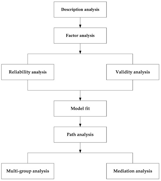 The analysis process is illustrated in Figure 1. Descriptive statistics are used to understand the sample structure. Factor analysis confirms the consistency of the self-efficacy, creativity, employability, and scholar identity dimensions. Since the questionnaire items were adapted from scholars’ questionnaires, the reliability and validity of the scale need to be confirmed. Before conducting structural equation modeling (SEM), the model fit needs to be assessed against the recommended standards. Path analysis using SEM is used to test the research hypotheses. A multi-group analysis is conducted to investigate the gender differences. As this study proposes a dual-factor mediation model, a mediation analysis is conducted to verify the feasibility of the dual-factor paths, as shown in Figure 1.