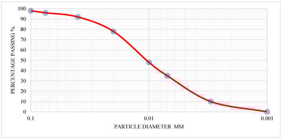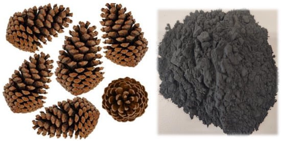 Studies have revealed that the characteristics of the biochar utilized largely depend on the primary feedstock [22]. The biochar samples used for this research work were processed from the pyrolysis of dried pine cones (collected from the Cyprus International University nature park), North Cyprus. Figure 1 shows the pine cone utilized for the research. The pine cones were air-dried to remove moisture, and then placed in a muffled furnace for pyrolysis at 500 °C for 2 h at a slow heating rate of 10 °C/min. According to ASTM D3174-12 [23]. This slow heating rate reduces the char flammability and ensures a larger char yield. After pyrolysis, the char was cooled down slowly by keeping it in the furnace until a considerable drop in temperature occurred. Grinding of the char produced was performed mechanically to obtain the majority of the particle sizes passing 75 µm using an electrically controlled Los Angeles machine before incorporating the biochar. Figure 2 shows the particle size distribution of the biochar, which depends on the feedstock and intensity of grinding. This was determined by using the Malvern Scirocco Mastersizer, and the range was between 5 µm and 75 µm (d50: 20.25 µm).