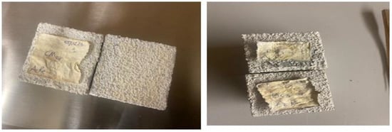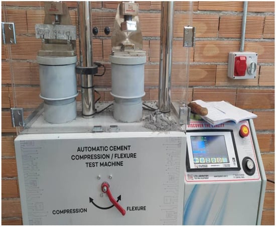 - Once the heating system was switched off, the samples were left inside to cool gradually for 24 h. The remaining compressive strength of the cooled mixture was then assessed.