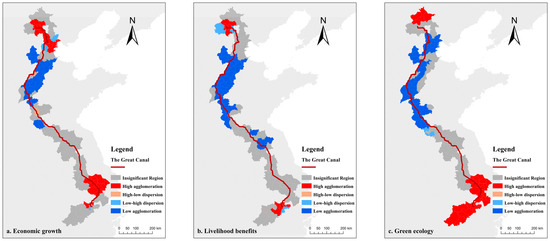 | Spatial Association Patterns | Economic Growth | Livelihood Benefits | Green Ecology | Innovation Drive | Food Guarantee | Comprehensive Index |