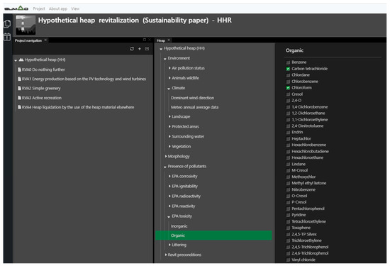 Please note that SUMAD RMT has the potential to be applied in revitalization projects in similar domains (e.g., open-pit mines, brownfields, degraded urban areas, etc.). Such research requires, first of all, domain data identification and the elaboration of new contents of the PDM module (knowledge base contents). Currently, SUMAD RMT is focused on heap revitalization planning. Any kind of European heap can be specified within the tool as a revitalized object. The tool is configurable (especially the calculations) and flexible. It is possible to change any database item manually on the revitalization project level or to request the inclusion/modification of a given item in the knowledge base to be visible to all projects. It is possible to replace the current knowledge base (risk factors, CBA categories, QCA categories, ERTs, UFs) with another one focused on a new domain of application. It is more challenging to change the kind of revitalization object (e.g., from a heap to any kind of brownfield). This requires object identification and the elaboration of scripts loading data into the knowledge base. The range of the tool’s adaptation depends on how different the new domain of application is from the current one. In summary, it is possible to adapt SUMAD RMT to other domains of revitalization in the future.