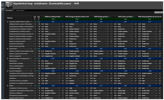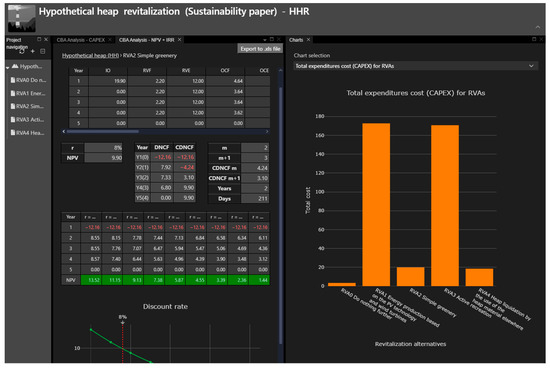 - Detailed data (textual, tabular, graphical), encompassing results produced by the RRA, CBA, and QCA modules and included in the heap and revitalization alternative specifications; additional examples are provided in Supplementary Materials;