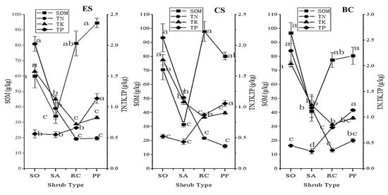 | Shrub Patch Type | Soil Depth (cm) | SOM (g/kg) | TN (g/kg) | TK (g/kg) | TP (g/kg) |