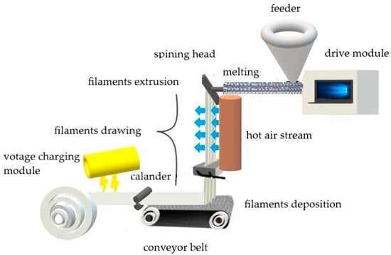 - Höhnemann, T.; Schnebele, J.; Arne, W.; Windschiegl, I. Nanoval Technology—An Intermediate Process between Meltblown and Spunbond. Materials 2023, 16, 2932. [Google Scholar] [CrossRef]