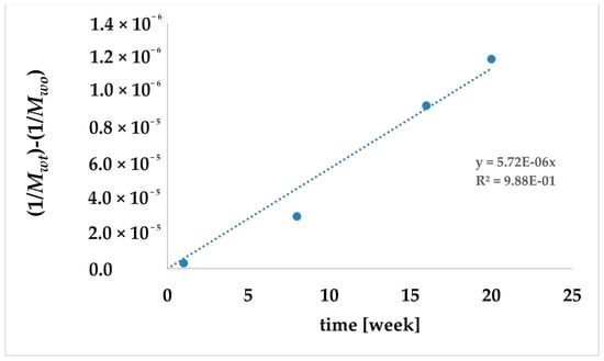 | Week of Biodegradation Process | Mw [g/mol] | Index Dispersion |