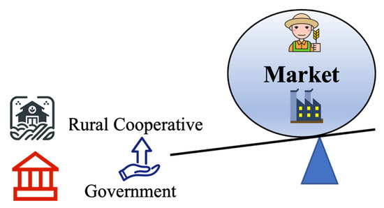 In our study of the regional straw resource utilization multi-agent network, we identified 30 closely interconnected associations, each varying in their interrelations. The strongest connections were observed among farmers, businesses, governments, and rural cooperatives. Rural cooperatives, primarily composed of farmers with a high willingness to utilize straw, significantly contribute to the probability of these groups appearing together more frequently than individually. The combination of government and rural cooperatives is tightly linked to the business and farmer duo. The government, as a key external driver in the initial stages of regional straw resource utilization, primarily exerts influence through fiscal measures to guide and stimulate development [58]. Rural cooperatives, as self-organized profit-oriented organizations, are pillars of rural policy, promoting economic cooperation and market integration [59,60]. However, they also exhibit characteristics such as economic fragility and dependency on government support [61]. Therefore, the combination of the external stimulus from the government and cooperatives encourages businesses and farmers to move towards straw utilization. A stable market supply and demand pattern formed by the government, farmers, and companies is crucial in attracting rural cooperatives. Current research focuses on the interrelation of these entities as they are the fundamental market and external environmental entities, thereby forming the base of regional straw resource utilization development [32]. As the straw utilization market evolves, it attracts more market participants, such as rural cooperatives, which also play a role in mitigating the vulnerability of small-scale farmers to poverty [62]. Thus, policymakers should focus on the relationship between market supply and demand, which is formed by farmers and businesses, while continuously improving the utilization market through external forces like those of governments and cooperatives in order to establish a robust utilization framework, as shown as Figure 9.