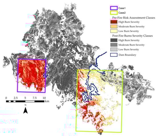 Pre-fire risk assessment results within Case1 and 2 boundaries and post-fire burn severity.