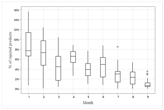 - Stage seven: During the implementation of the PDCA cycles (plan, do, check, act), considerable increases in production levels and decreases in rejections were achieved, exceeding the goals established by management. The improvement plans were driven and diminished by a series of factors, which can be seen in Table 4 and Table 5.