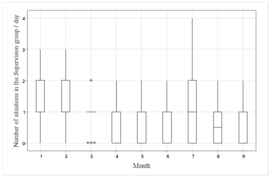 In Table 7, it is noteworthy that the Quality group consistently exhibits the highest frequency, indicating greater involvement in managing situations compared to the other groups. Hours 1, 3, 6, and 8 emerge as moments with generally higher frequencies. In contrast, Hour 9 shows the lowest activity in terms of situations for all groups. Variability in frequencies is reflected in the standard deviation, with the Supervision group being the most variable. Furthermore, the coefficient of variation reveals that, although all groups show moderate levels of variability, the Supervision group has the highest relative variability. These results underscore the importance of considering the hourly distribution of situations and variability among groups, providing a comprehensive understanding of the dynamics of situations in this specific context.
