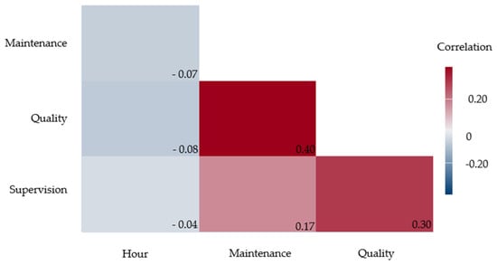 Correlogram between the variables time, number of supervision situations, Quality and Maintenance.