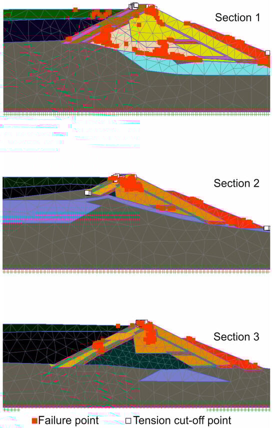 Improving tailings dam safety through soil treatment was investigated using the Plaxis program, taking into account the phased construction situation with the finite element method [31]. The numerical model showed that the use of cement kiln dust, re-cycled gypsum B mixture, increased the overall stability of the tailings dam above the traditional 1.5 factor of safety requirements. Failure of tailings dams under different conditions was investigated [32]. The results display that the grain size distribution of the model sand should be moderate. The composition of the particle size distribution has a significant impact on the collapse morphology of the dam after failure. An experimental and theoretical study with the Tailings Dam with Geotextile Bag (TDGB) was carried out using the stability analysis method based on the limit equilibrium theory of tailings dams [33]. With respect to the test and analysis results, TDGB has displayed enhanced stability compared to the general tailings dam. An empirical function has been validated concerning the risk assessment by a simulation of tailings dams failure [34]. A dam located in the Ledong region of China was chosen as an application model and the static and seepage analyses of tailings dams were studied with the finite element method [35]. According to the outcomes, the seepage deformation failure of the main dam and the auxiliary dam occurred in neither case (normal water level and high-water level). To perform time-domain dynamic analysis of tailings dams, a power spectrum-based approach was studied by scanning seismic records [36]. An excellent fit is achieved with displacements and a reasonable one with pore water pressures in a dam using Plaxis 2D [37]. The measurement values obtained with a device and the Plaxis 2D finite element model results were quite consistent. This validates the suitability of using the Plaxis 2D program in similar studies. Numerical analysis of innovative seismic response of earth-rock dams studies were carried out with antiseepage walls [38]. The dynamic viscoelastic constitutive model was utilized in this research. The buckling fracture mechanism of broken rock dam foundation was investigated by gentle transitions and vertical structural discontinuities [39]. The modeling philosophy and process, and outcomes for the rock dam foundation are defined and prompted by using numerical methods. A buckling type of failure mechanism is confirmed by analyzing the deformation properties resulting from the overloading of the strength reduction of the numerical method. A comprehensive diagnostic method for the safety of tailings dams based on the dynamic weight and quantitative index was studied [40]. For the deformation stability project, the amount and rate of deformation are determined by analyzing and interpreting normal operating data in situ observational data and combining them with numerical simulation outcomes.