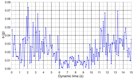 Acceleration vs. time for a point at the surface of the tailings for Section 2.