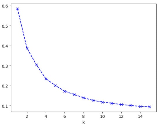 Due to the fragmented nature of the identified natural character types, image segmentation and clustering methods were introduced for further zoning. Firstly, on the basis of landscape character types, the eCognition 25 software was used to segment regions. Ideal segmentation results were obtained with scale and color index values of 200 and 0.2, respectively, resulting in 547 units (Figure 7a). Secondly, the areas of segmented regions were statistically recorded to form a data matrix. The Elbow Method was used to determine the optimal clustering interval, which was found to be from 2 to 10 classes. Silhouette coefficients were then calculated for each clustering number (K) within the interval, revealing that the three, four, five, and seven classes had good clustering quality (Figure 8, Table 4). Finally, the results were mapped into ArcGIS to compare the clustering effects of each class, and four classes were determined to be the optimal regional clustering number (Figure 7b).