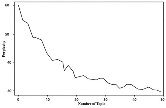 The LDA was used to mine the implicit topic information from the text, and LDA analysis was performed through the sklearn library, a machine learning module in Python. The perplexity is calculated for different numbers of topics so as to determine the optimal number of topics.