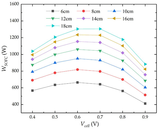 Based on the above conditions, an SOFC-integrated system is constructed with a Vcell between 0.4 V and 0.9 V and an Lcell between 6 cm and 18 cm.