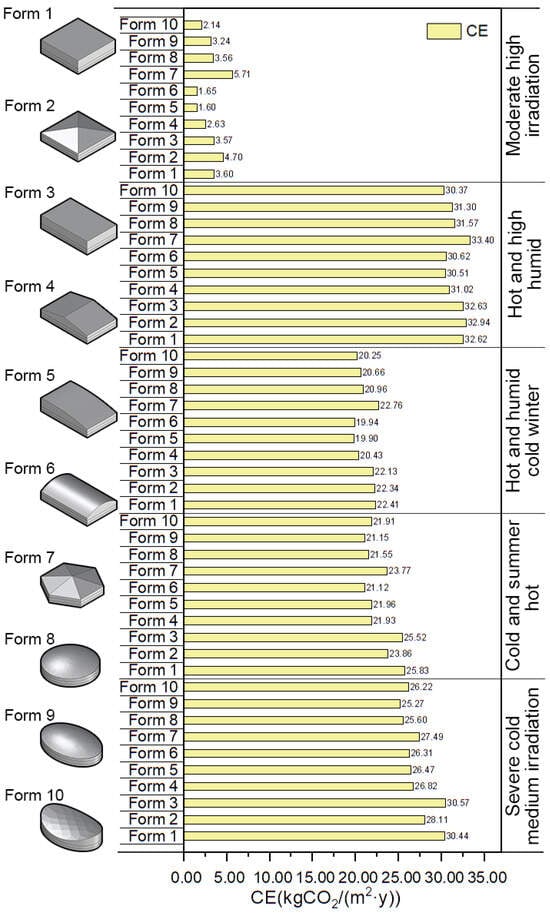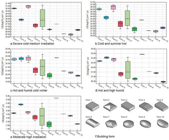 3.3.2. Building Form and Carbon Emissions in Five Climate Zones