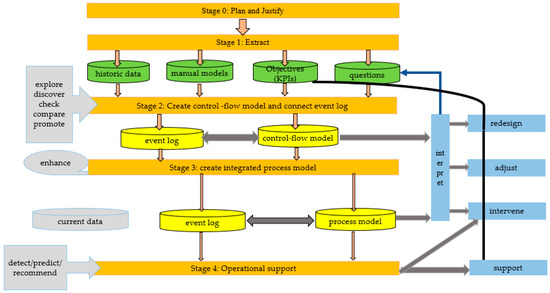 - Vom Brocke, J.; Jans, M.; Mendling, J.; Reijers, H.A. A Five-Level Framework for Research on Process Mining. Bus. Inf. Syst. Eng. 2021, 63, 483–490. [Google Scholar] [CrossRef]