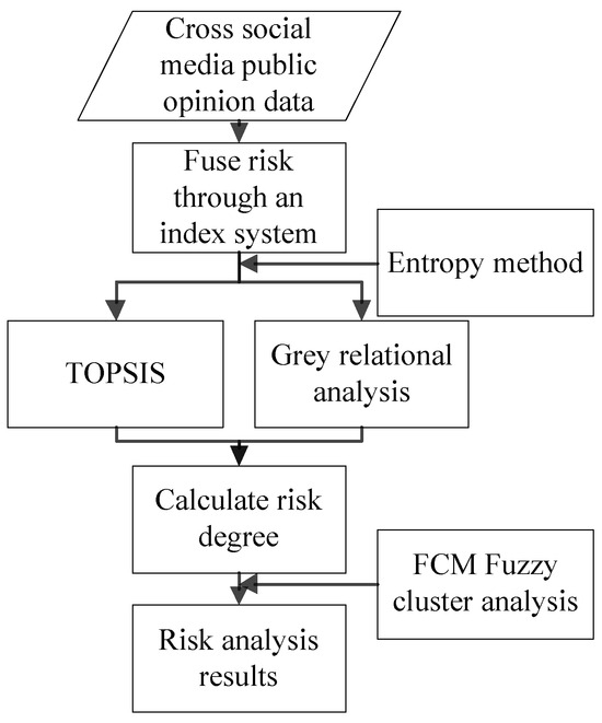 Firstly, we used crawler tools to crawl relevant data. Secondly, we established an index system based on the characteristics of enterprise public opinion and the cross social media context. Subsequently, the entropy method was used to allocate index weights. Then, we used TOPSIS and grey relational analysis to evaluate the cases. Finally, we used FCM to classify the evaluation results.