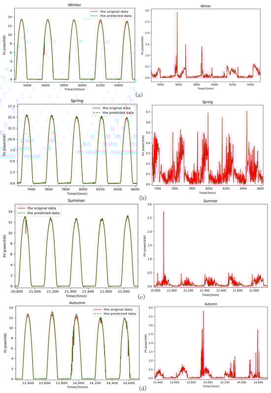 Prediction results of the proposed model in the different seasons of (a) winter, (b) spring, (c) summer, and (d) autumn.