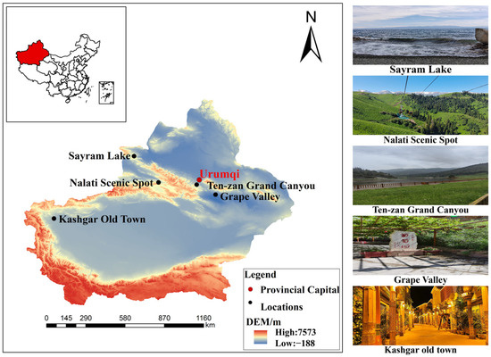 - Xinjiang Receives More than 200 Million Tourists in First Three Quarters. Available online: https://difang.gmw.cn/xj/2023-10/25/content_36951714.htm (accessed on 21 November 2023).
