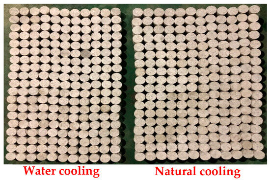 - When the muffle furnace is naturally cooled to room temperature, the 15 specimens cooled in water are put into the muffle furnace and heated to 100 °C at the same heating rate for 8 h. Then, the specimens are taken out and cooled by water; this process is one cycle.