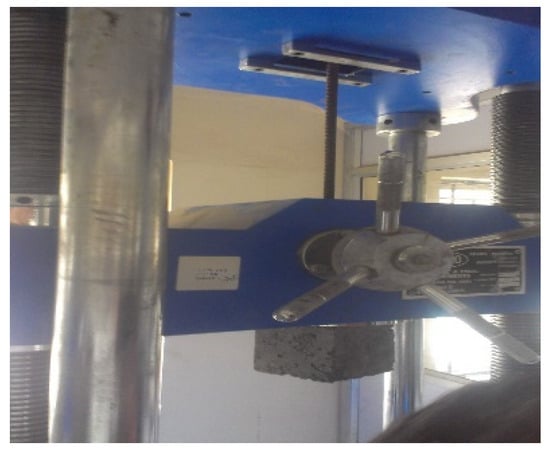 Cube-shaped concrete samples measuring 100 mm × 100 mm × 100 mm were employed for the pull-out test. The test was run by the recommended protocol outlined in IS 2770-1967 (Reaffirmed 2007) [38]. The bonding of the implanted steel with the concrete was tested on six specimens, and the load necessary for a 0.25 mm slide was noted. Using 600 kN-capacity universal testing equipment, a concrete sample was gradually loaded to evaluate the bonding stress and slip (Figure 7). Throughout the test, it was noted that the loading rate should be at most 2250 kg/min.