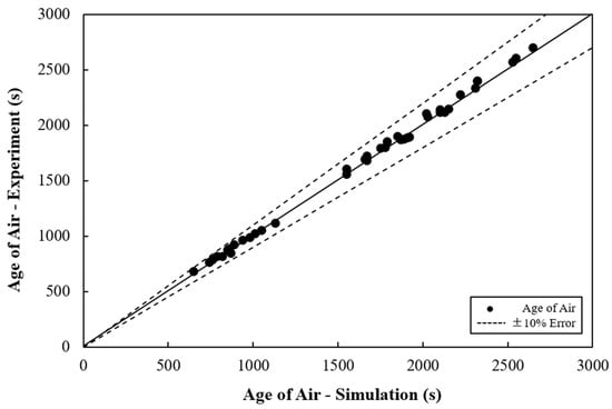 Error of the age of air between experimental data and numerical outcomes for all considered cases.