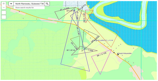 The spatial distribution coefficients in North Rarowatu are shown by the colored triangular lines. Criteria (γi) = 2,097,337,989.