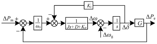Ignoring the grid frequency disturbance in Figure 6, that is, Δωg = 0, the small-signal transfer function between Δδ and Δω can be obtained