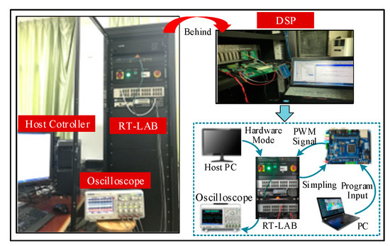 Based on the RT-LAB hardware-in-the-loop platform shown in Figure 14, further verification is implemented. The model of the main circuit shown in Figure 1 is established and implemented in RT-LAB. The RT-LAB is connected to a TMS320F28335 DSP controller through an interface card. When the proposed method is successfully programmed and run in the DSP, the generated PWM signals are sent to the RT-LAB model for implementation and the corresponding waveforms are output to the oscilloscope. The transient performance of the traditional and the proposed VSG control under two types of faults k = 0.6 and k = 0.3 is simulated, respectively. The sampling time Ts = and the experimental parameters are listed in Table 2.