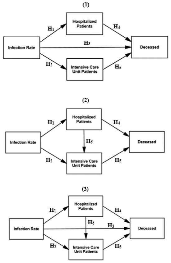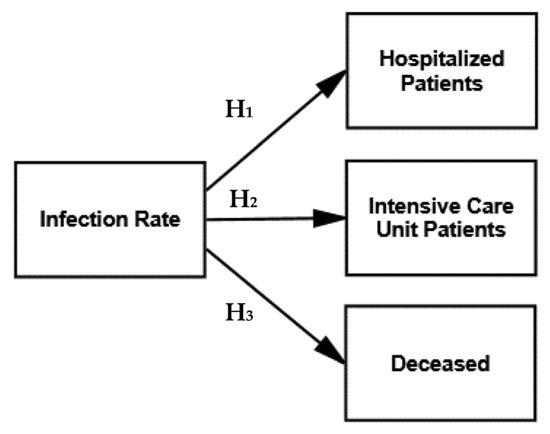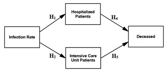 We tested the direct effect of three hypothesized relationships in the research model, based on the infection rate in relation to ICU patients, hospitalized patients and the deceased (i.e., Hypotheses 1–3), as displayed in Figure 2.