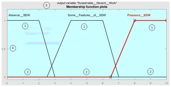 Finally, the defuzzification consists of converting the fuzzy sets into a crisp single value that is the precise representation of the fuzzy sets [25]. The defuzzified values represent the level of sustained decent work in any workplace, ranging from 1 to 10.