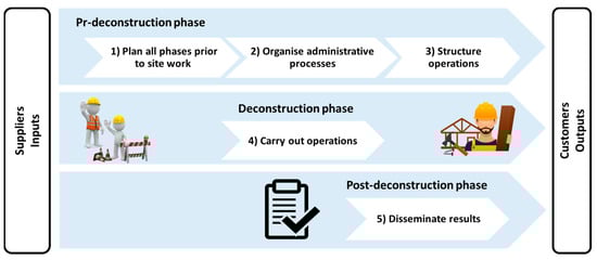 Deconstruction process mapping at the macroscopic level (simplified SIPOC).
