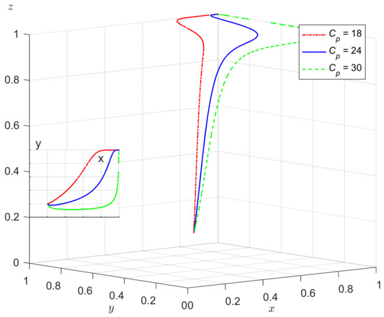 Moreover, as shown in Figure 14, the PSs finally choose the “no traceability” strategy () in the initial state. When the value of the subsidies increases the PSs do not change their strategy and still do not choose the “traceability” strategy. However, when the value of penalties increases the PSs will choose the “traceability” strategy. Compared to increasing the same amount of subsidy, encouraging suppliers to choose the “traceability” strategy is more likely to be achieved by increasing the penalty. It is worth noting that the evolutionary trajectory of the PSs fluctuates as the penalties increase. Therefore, the LGs need to add more penalties in order for the evolutionary trajectory of the PSs to converge to 1.