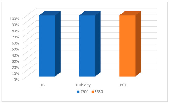 Evolution of the retention percentage of the different pollutants using S650 and S700 membranes.