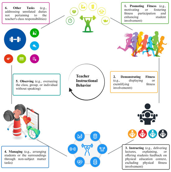- Instructing: This encompasses traditional teaching methods such as lecturing, describing, and providing feedback on PE content, excluding fitness engagement.