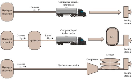 - Demir, M.E.; Dincer, I. Cost assessment and evaluation of various hydrogen delivery scenarios. Int. J. Hydrogen Energy 2018, 43, 10420–10430. [Google Scholar] [CrossRef]