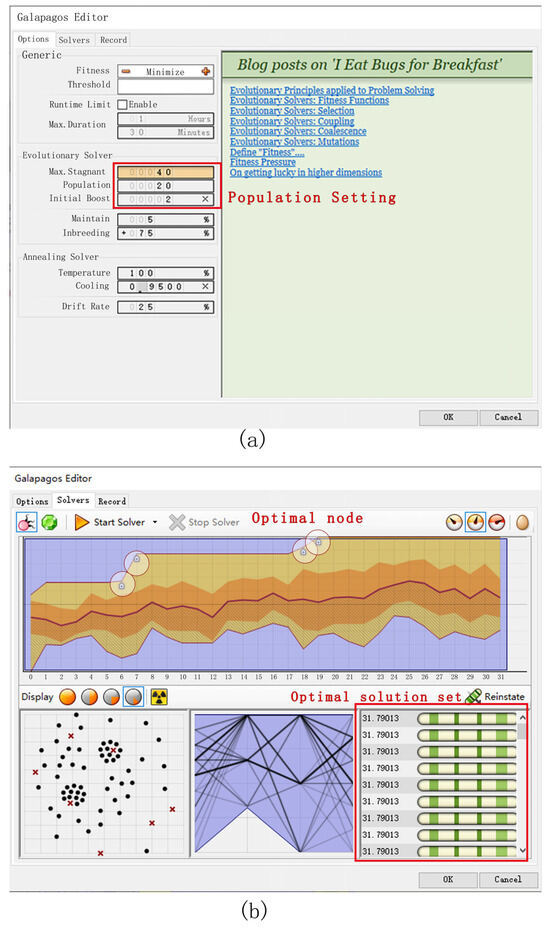 Optimization interface. ((a)—Initial interface setup, (b)—Optimization interface).