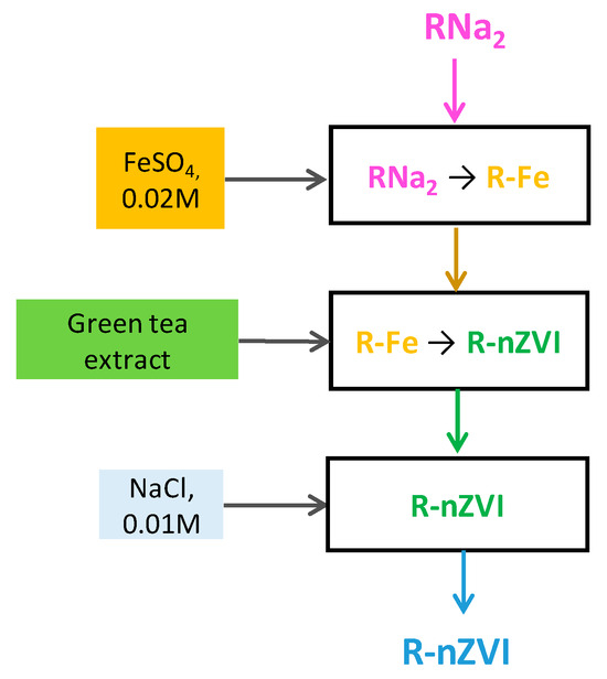 The main steps in the R-nZVI synthesis procedure.