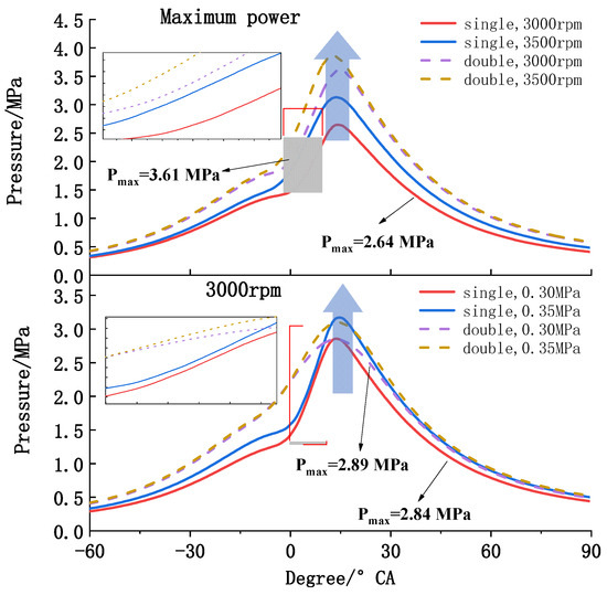 Comparison of the Max Combustion Pressure and Maximum Pressure Rise Rate at Different Working Conditions.
