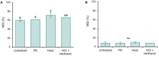 The MGI values are presented as the means of four independent replicates with standard deviation (SD). The data were analysed statistically by one-way ANOVA, the Tukey post hoc test, and the independent samples t-test using the software IBM SPSS Statistics (v. 29).