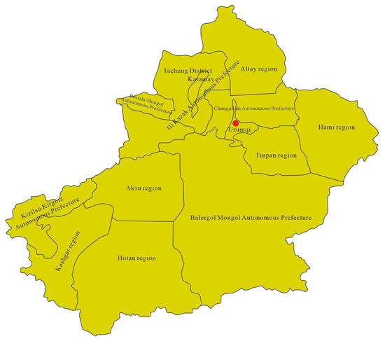 In addition, economic growth is accompanied by significant industrial clustering of the status quo [1]. According to a survey, the entire world’s economic activities and output are now mainly concentrated in industrialized countries and regions. With continuous development, China’s industries in the provincial capitals and the eastern part of the cluster are obvious. In recent years, the phenomenon of industrial clustering has become more obvious in China, and research shows that industrial clusters can accelerate the flow of resources in the reorganized space, thus promoting economic growth [2]. With the continuous promotion of Belt and Road (B&R), the importance of Xinjiang as the core area of the Silk Road Economic Belt has become more obvious in terms of the trend of carbon emissions and economic development under industrial clusters. This paper analyzes the data from 14 prefectural and municipal regions and cities of Xinjiang from 2006 to 2020. A map of the regions and cities is shown in Figure 1. Utilizing the role of industrial clusters in the process of low-carbon economic development helps to promote the low-carbon sustainable development of the city. Based on this, we investigated the coordination among industrial clusters, carbon emissions, and economic growth and measured low-carbon economic efficiency under the influence of industrial clusters. The aim of this research is to provide a decision-making basis for the two-pronged approach of reducing carbon emissions and stabilizing growth in the western region and actively exploring effective measures suitable for local low-carbon sustainable development.