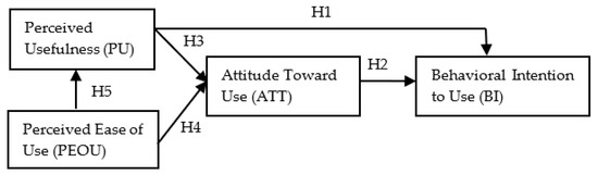 - Davis, F.D. Perceived usefulness, perceived ease of use, and user acceptance of information technology. MIS Q. 1989, 13, 319–340. [Google Scholar] [CrossRef]