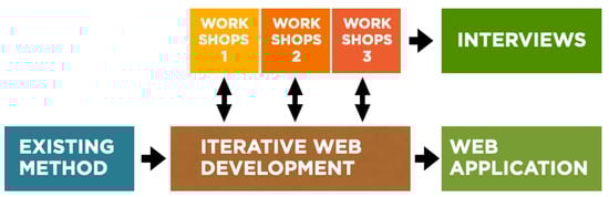 On the basis of the existing method of ref. [15], a new web application was created to support users in their process implementation. The aims of the web application were as follows: (a) to facilitate the process of working with larger datasets, (b) to include geographical data layers, and (c) to enable the analysis of complex information arising from the data gathering.